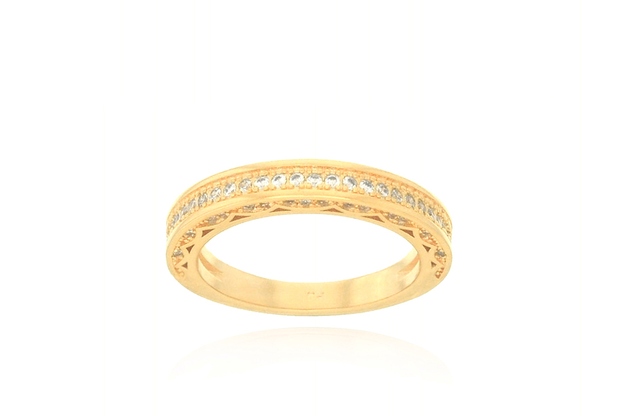 ANEL BANHADO EM OURO, APARADOR DUPLO, COM 2 FILEIRAS DE ZIRCÔNIAS CADA
