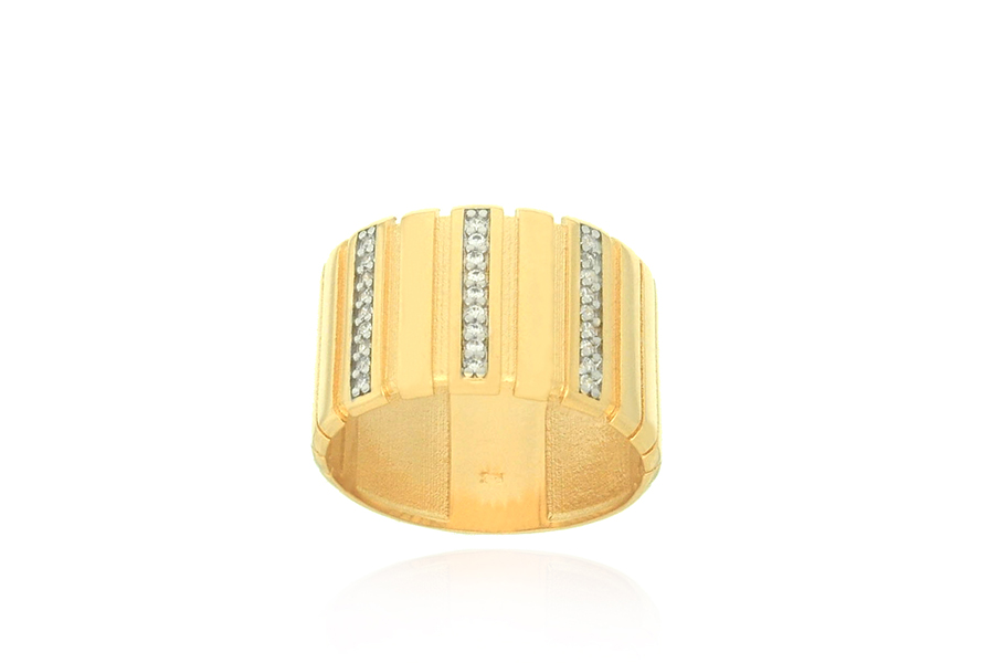 ANEL BANHADO EM OURO, COM ZIRCÔNIAS, 14,90mm LARGURA