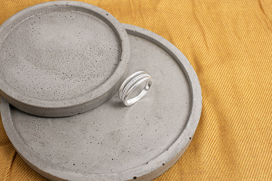 ANEL BANHADO EM RÓDIO BRANCO, 8mm LARGURA, FILIGRAN