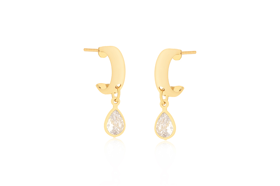 BRINCO BANHADO EM OURO, BASE 8,50mm ALTURA, 3,80mm LARGURA E PEDRA GOTA 8X5mm
