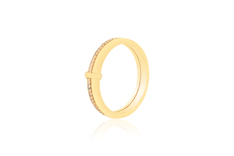 ANEL BANHADO EM OURO, APARADOR DUPLO, COM 2 FILEIRAS DE ZIRCÔNIAS CADA