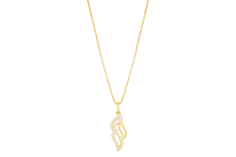 GARGANTILHA BANHADA EM OURO, VENEZIANA 0,60mm, 45cm COMPRIMENTO E PINGENTE ZIRCÔNIA NAVETE PARA TODAS AS CORES