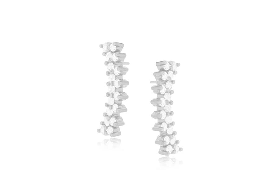 BRINCO BANHADO EM RÓDIO BRANCO, PONTO DE LUZ 5mm, CRAVAÇÃO INGLESA
