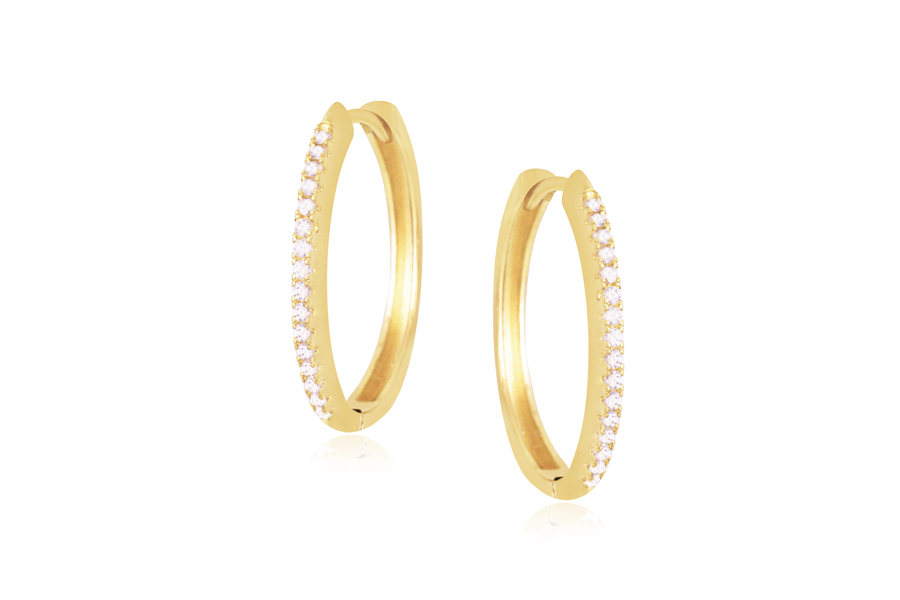 BRINCO BANHADO EM OURO, 15mm ALTURA COM 21 ZIRCÔNIAS