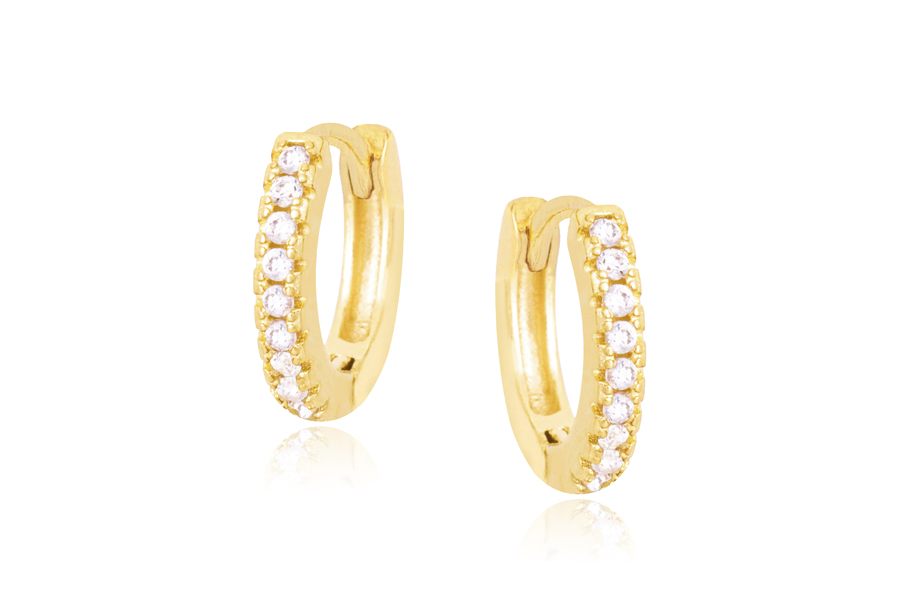 BRINCO BANHADO EM OURO, 15mm ALTURA COM 21 ZIRCÔNIAS