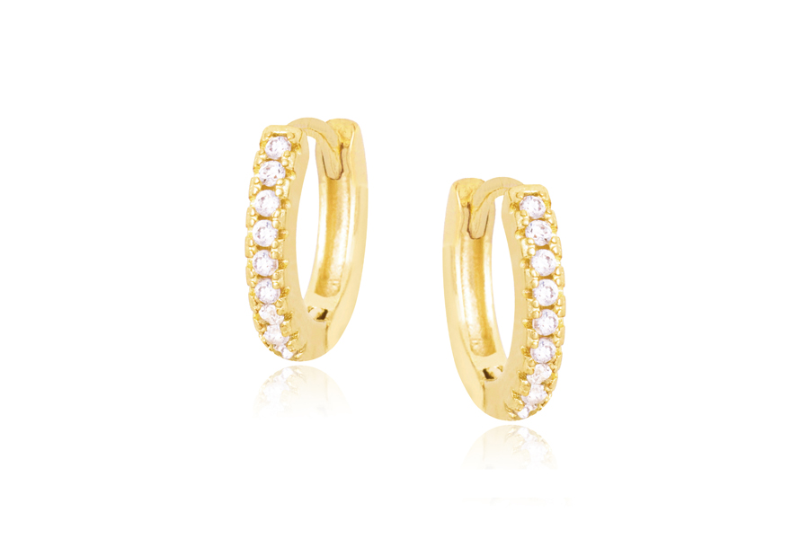 BRINCO BANHADO EM OURO, 15mm ALTURA COM 21 ZIRCÔNIAS