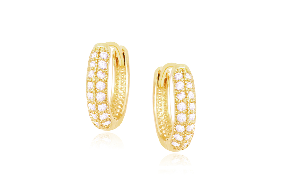 BRINCO BANHADO EM OURO, 15mm ALTURA COM 21 ZIRCÔNIAS