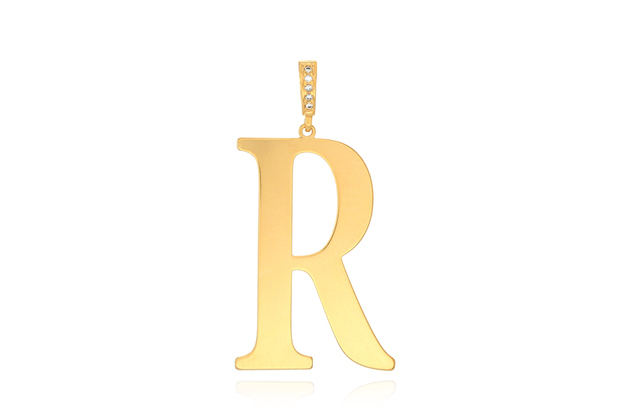 PINGENTE BANHADO EM OURO, LETRA S, 53mm ALTURA, BASE CRAVEJADA