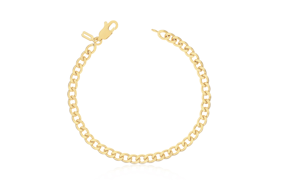 PULSEIRA BANHADA EM OURO, CORRENTE ELO PORTUGUÊS 5mm, 17cm COMPRIMENTO, EXTENSOR 5cm COMPRIMENTO E PESO 4,60g