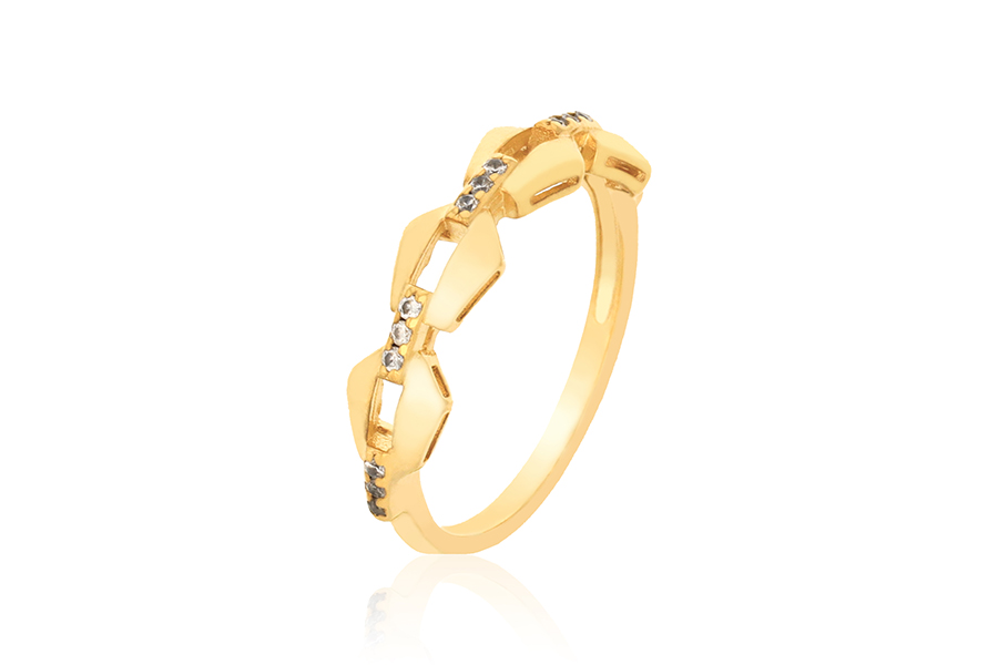 ANEL BANHADO EM OURO, ALIANÇA COM ZIRCÔNIAS BRANCAS OU PRETAS