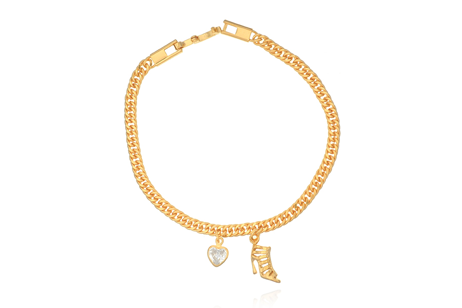 PULSEIRA BANHADA EM OURO, ELO PORTUGUÊS 3mm, ELO CORAÇÃO 4,20mm LARGURA, PINGENTE CORAÇÃO 11mm LARGURA COM MENINA