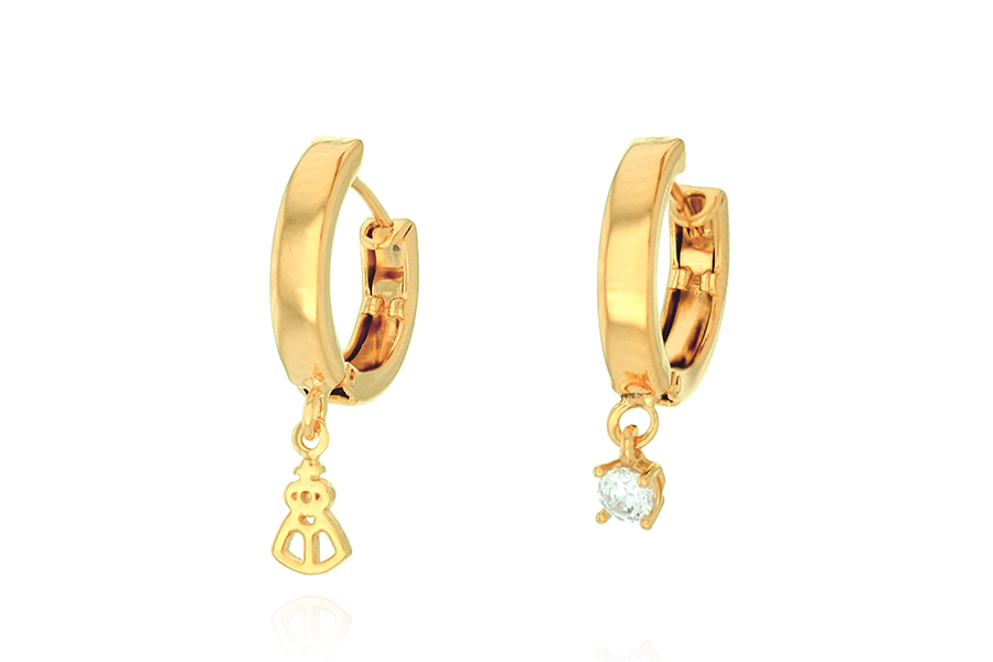 BRINCO BANHADO EM OURO, 15mm ALTURA COM 21 ZIRCÔNIAS