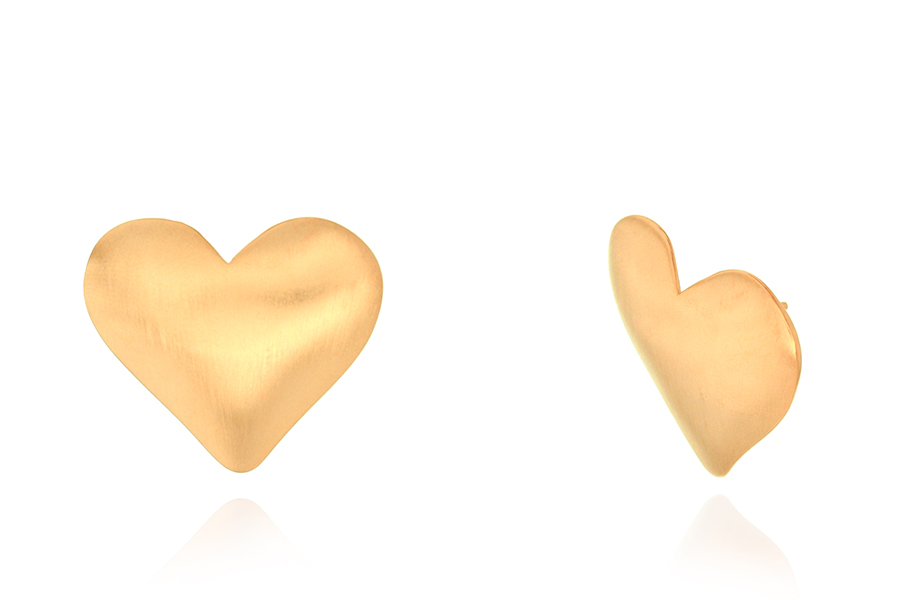 BRINCO BANHADO EM OURO, DOIS CORAÇÕES 8mm ALTURA