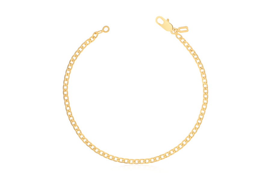 PULSEIRA BANHADA EM OURO, CORRENTE ELO PORTUGUÊS 2,50mm, 17cm COMPRIMENTO, EXTENSOR 5cm COMPRIMENTO E PESO 2,20g