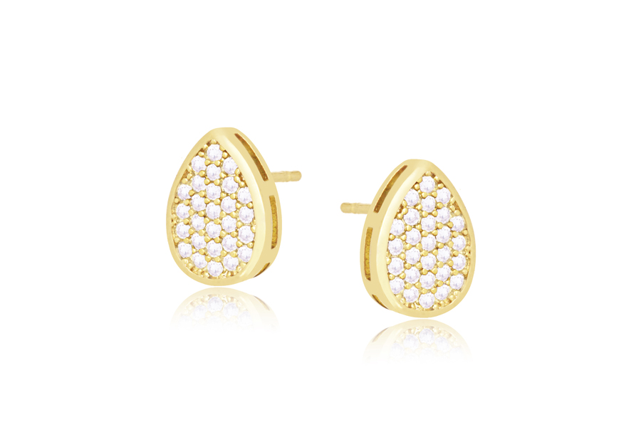 BRINCO BANHADO EM OURO, BASE 8,50mm ALTURA, 3,80mm LARGURA E PEDRA GOTA 8X5mm