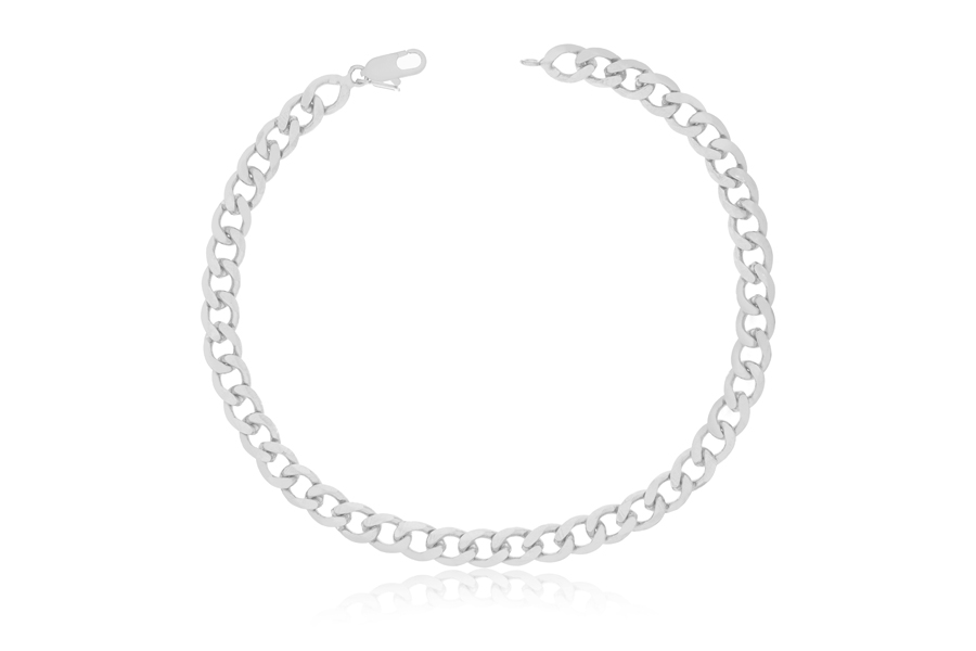 PULSEIRA BANHADA EM PRATA LEVE, ELO CARTIER 5,10x3,30mm, 17cm COMPRIMENTO, EXTENSOR 5cm COMPRIMENTO, SAPATO E BOCA