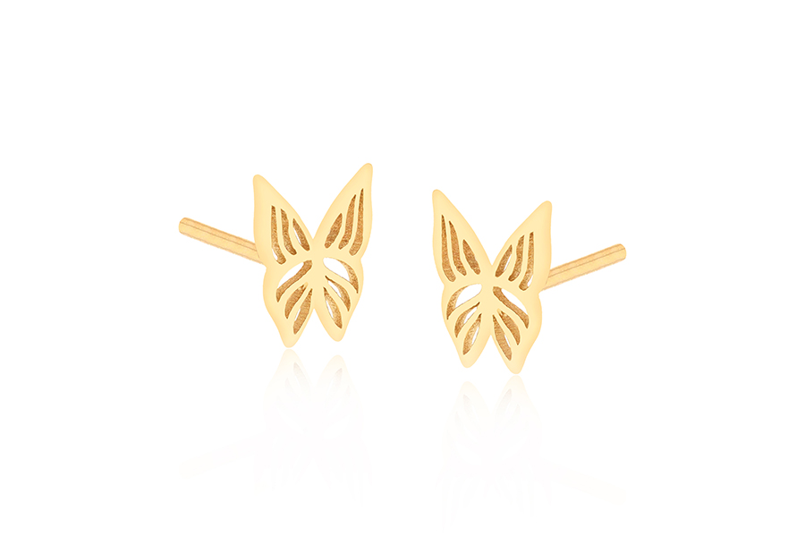 BRINCO BANHADO EM OURO, ESTRELA 4mm LARGURA, COM TARRAXA BABY
