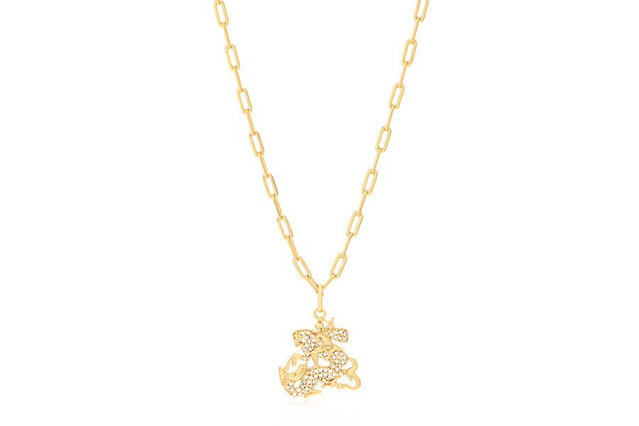 GARGANTILHA BANHADA EM OURO, GRAVATA, ELO 1,90mm LARGURA, 44cm COMPRIMENTO E ZIRCÔNIAS GOTAS