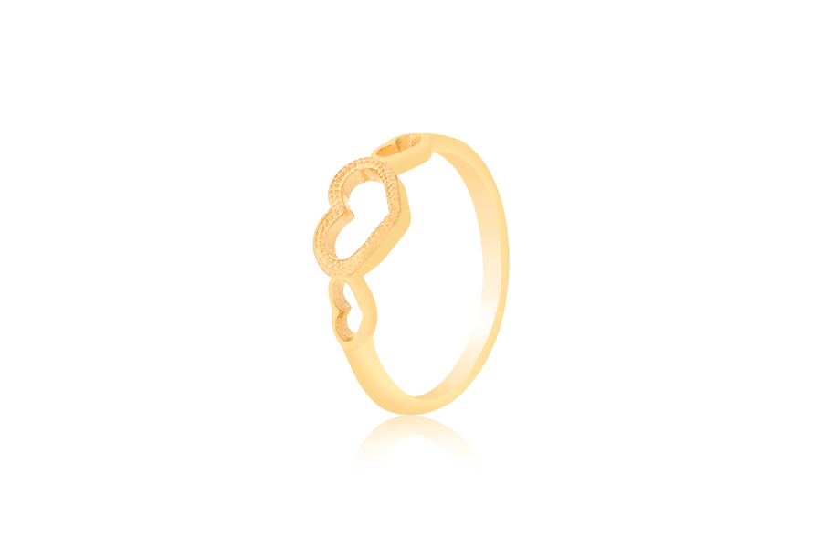 ANEL BANHADO EM OURO, 1 FILEIRA DE ZIRCÔNIAS E LATERAIS COM CORAÇÕES VAZADO