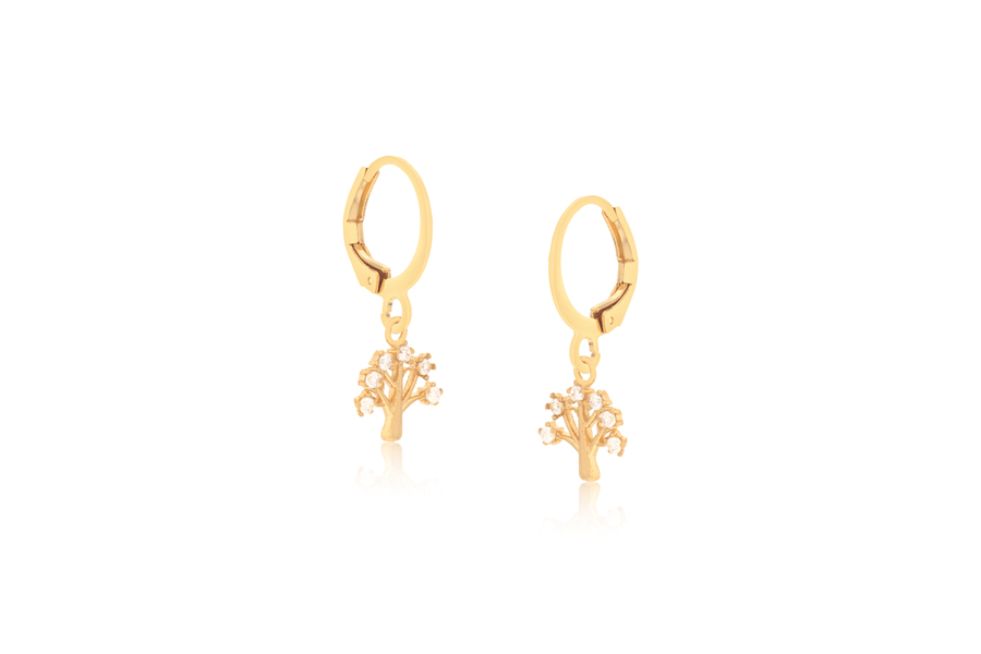 BRINCO BANHADO EM OURO, 15mm ALTURA COM 21 ZIRCÔNIAS
