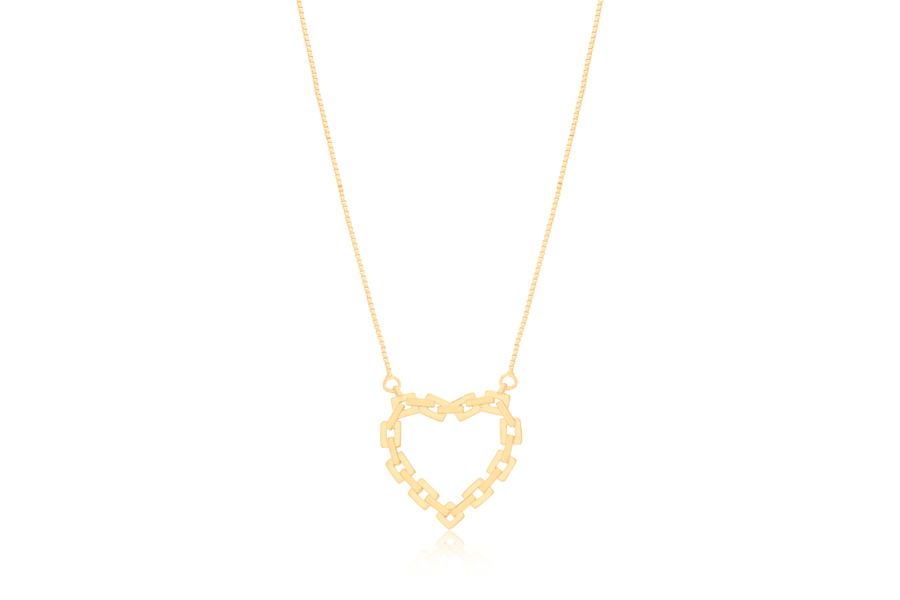 GARGANTILHA BANHADA EM OURO, 2,40mm ESPESSURA, 40cm DE COMPRIMENTO E CORAÇÃO 14mm LARGURA E 12mm ALTURA