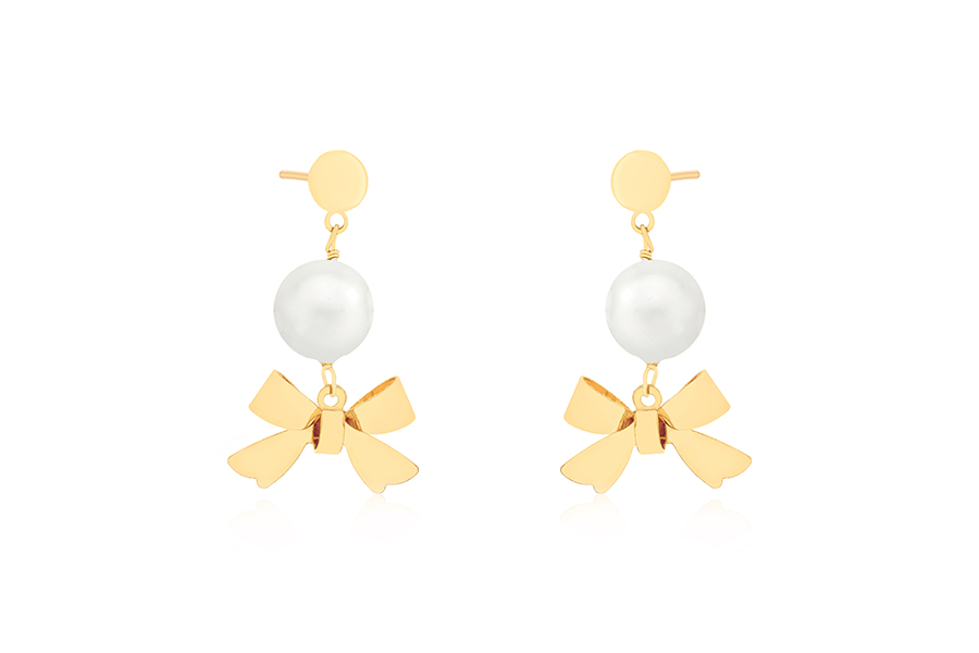BRINCO BANHADO EM OURO, BASE 8,50mm DIÂMETRO, ELO PORTUGUÊS 2mm DIÂMETRO, 2,50cm COMPRIMENTO E PÉROLA SHELL 10mm DIÂMETRO