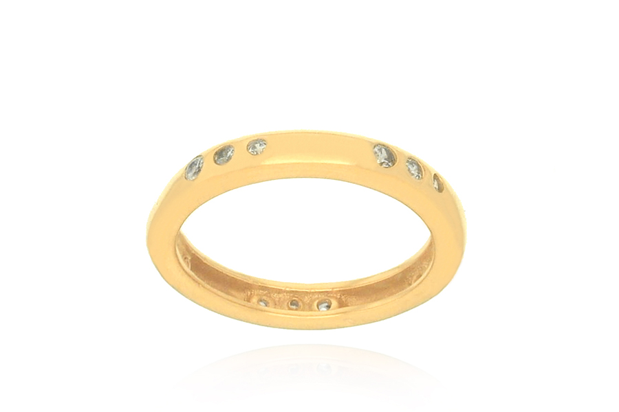 ANEL EM PRATA, COM BANHO DE OURO, 10 ZIRCÔNIAS, 5,60mm LARGURA