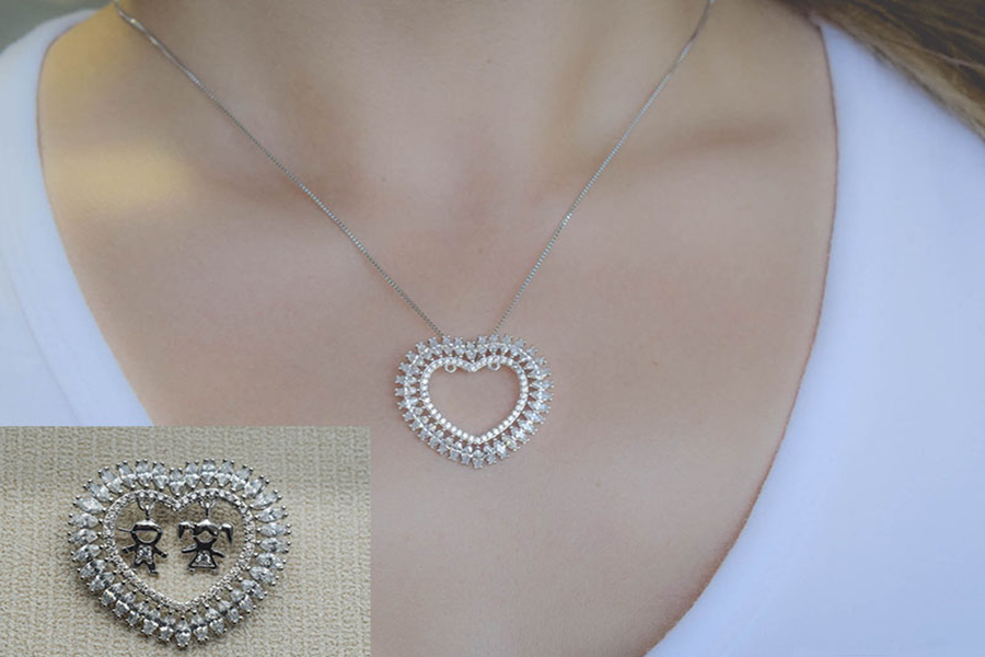 PINGENTE BANHADO EM RÓDIO BRANCO, CORAÇÃO 6,50mm LARGURA, COLEÇÃO COLLECT