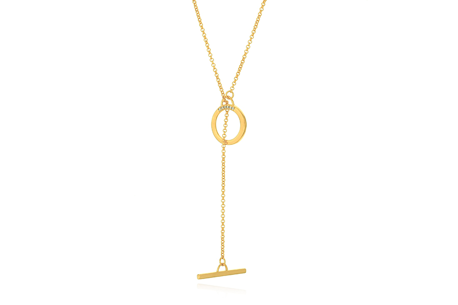 GARGANTILHA BANHADA EM OURO, GRAVATA, ELO 1,90mm LARGURA, 44cm COMPRIMENTO E ZIRCÔNIAS GOTAS