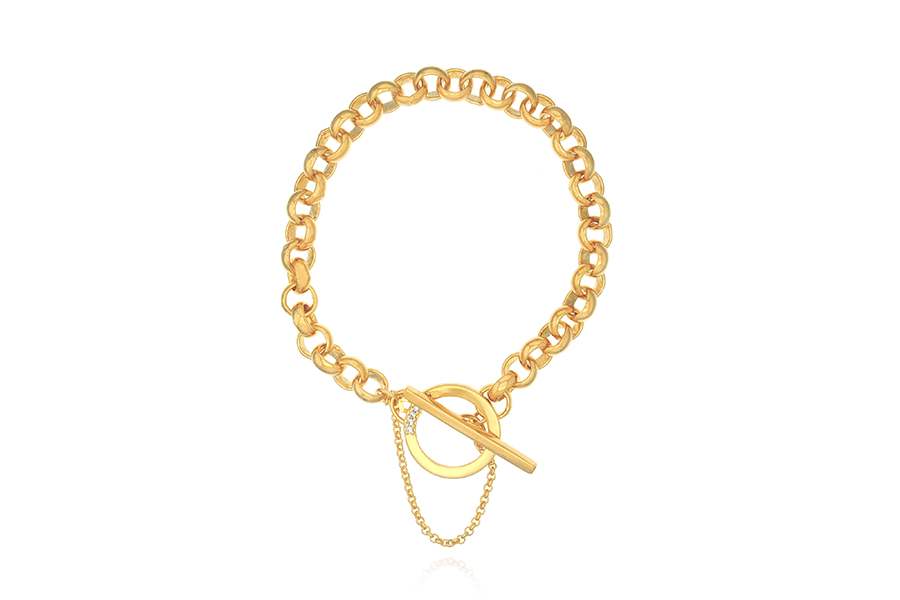 PULSEIRA BANHADA EM OURO, CORRENTE ELO PORTUGUÊS 5mm, 17cm COMPRIMENTO, EXTENSOR 5cm COMPRIMENTO E PESO 4,60g