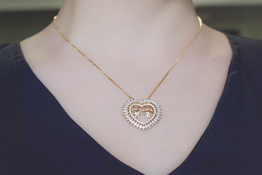 PINGENTE BANHADO EM OURO, CORAÇÃO 17mm LARGURA, COM 1 MENINO, COM OU SEM RESINA