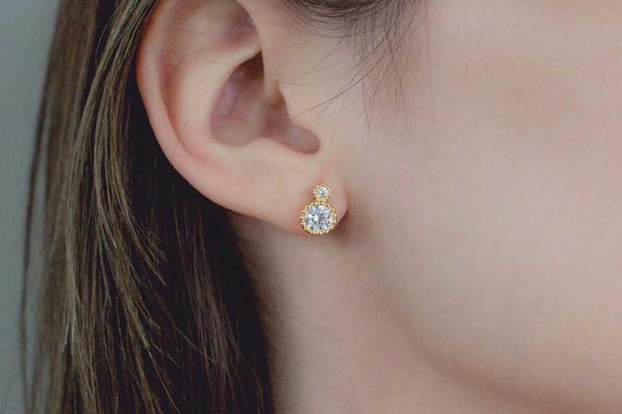 BRINCO BANHADO EM OURO, ZIRCÔNIA 5mm DIÂMETRO