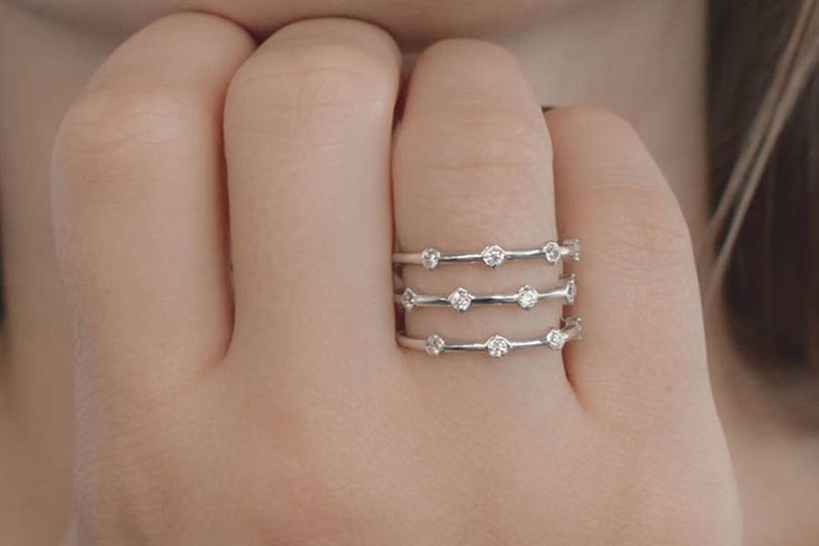 ANEL BANHADO EM RÓDIO BRANCO, TRIPLO ENTRELAÇADO