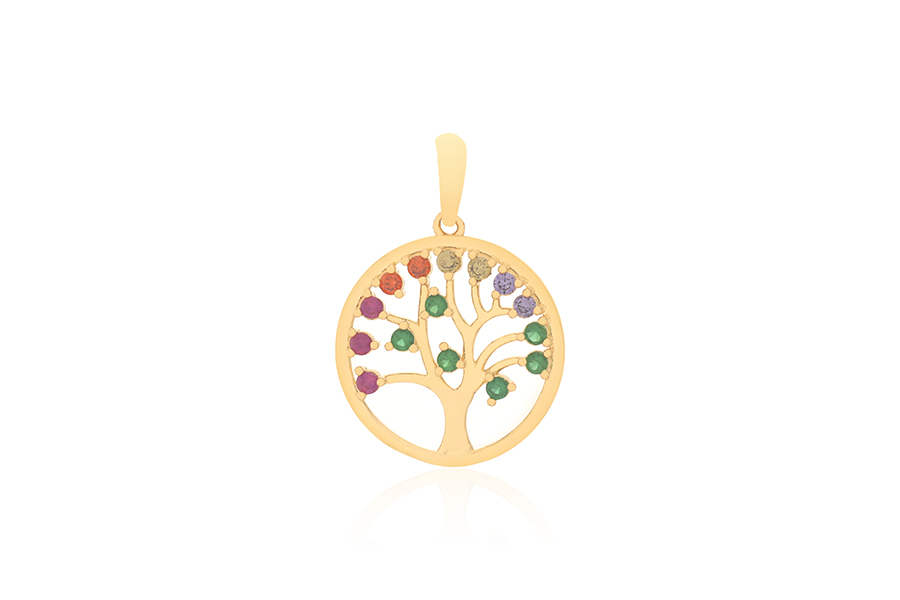 PINGENTE BANHADO EM OURO, CRISTAL REDONDO, TREVO