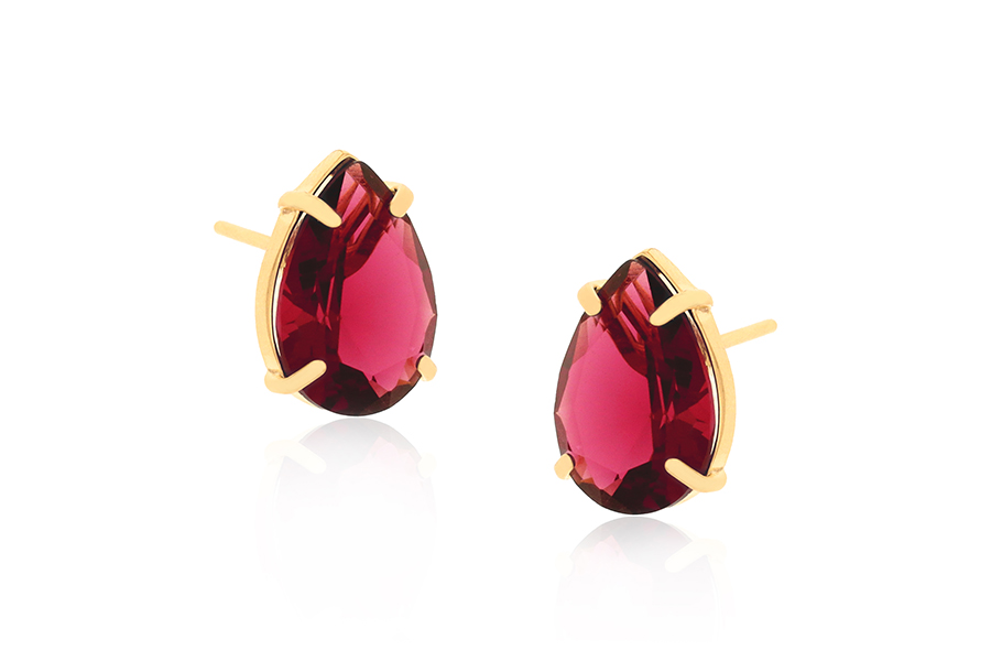 BRINCO BANHADO EM OURO, BASE 8,50mm ALTURA, 3,80mm LARGURA E PEDRA GOTA 8X5mm