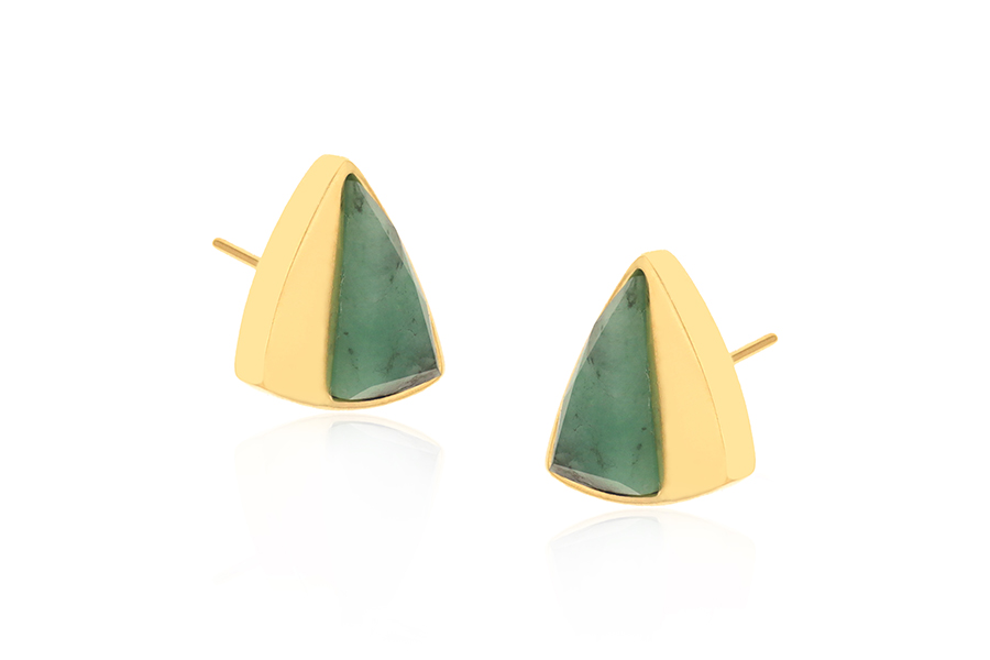 BRINCO BANHADO EM OURO, TRIÂNGULO 36mm ALTURA, 16,50mm LARGURA E ZIRCÔNIA 7mm DIÂMETRO, QUALQUER COR