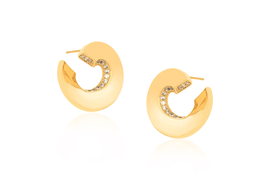 BRINCO BANHADO EM OURO, 21mm ALTURA COM 54 ZIRCÔNIAS