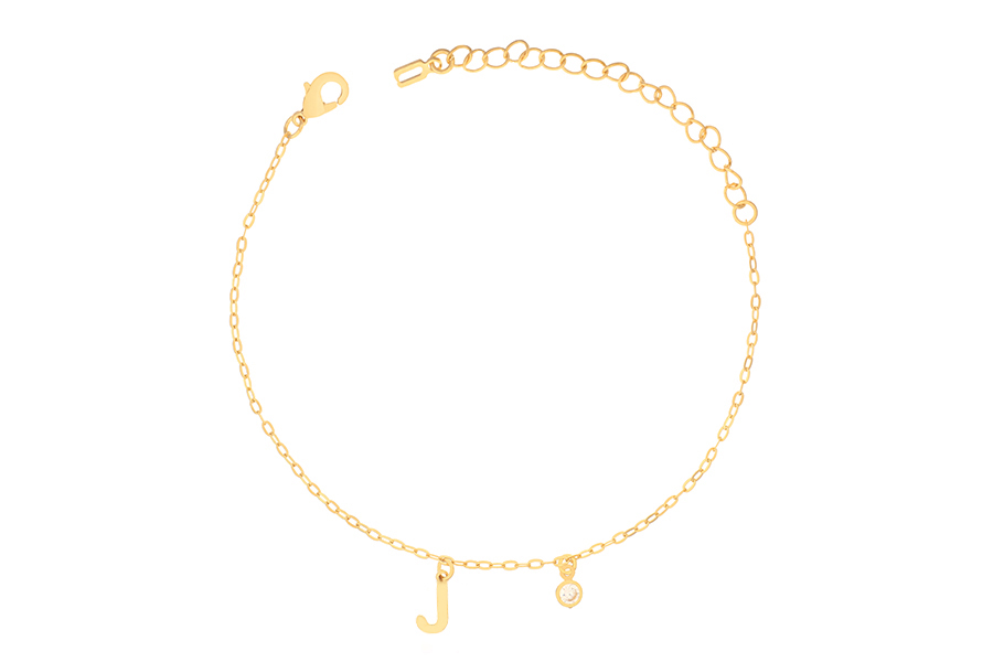 PULSEIRA INFANTIL BANHADA EM OURO, ELO 1,10mm COM BOLINHA, 14cm COMPRIMENTO, PONTO DE LUZ 3,50mm, AMOR DA TITIA 10mm COM CORAÇÃO