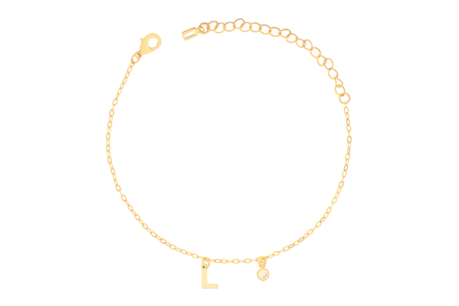 PULSEIRA INFANTIL BANHADA EM OURO, ELO DUPLO 1,80mm E CARTIER 3,50x1,90mm, 15cm COMPRIMENTO, CORAÇAO, ANJO E CHAVE