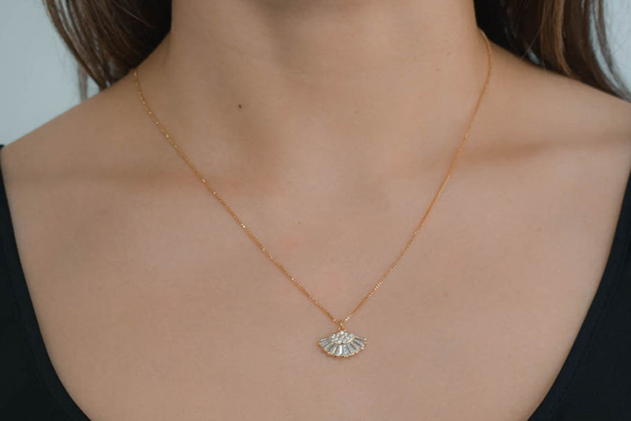 GARGANTILHA BANHADA EM OURO, OLHO GREGO 11mm DIÂMETRO, ELO VENEZIANA 0,80mm, 40cm COMPRIMENTO