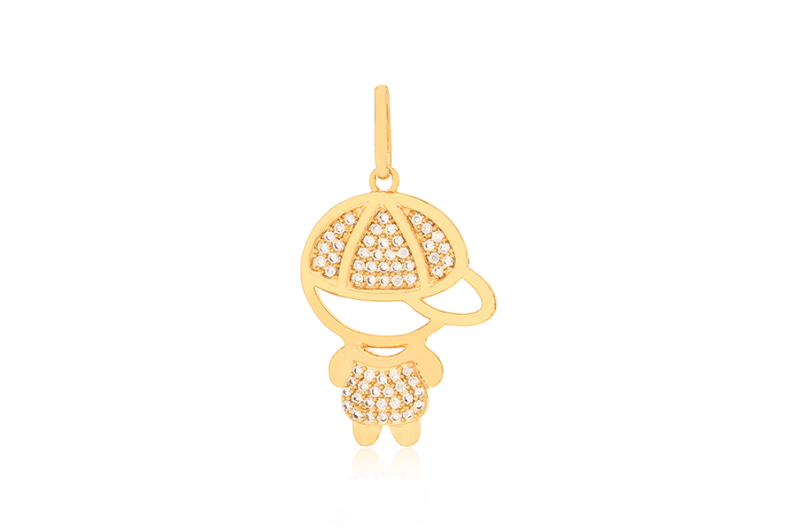 PINGENTE BANHADO EM OURO, MENINO 11mm ALTURA COM 3 ZIRCÔNIAS, COLEÇÃO COLLECT