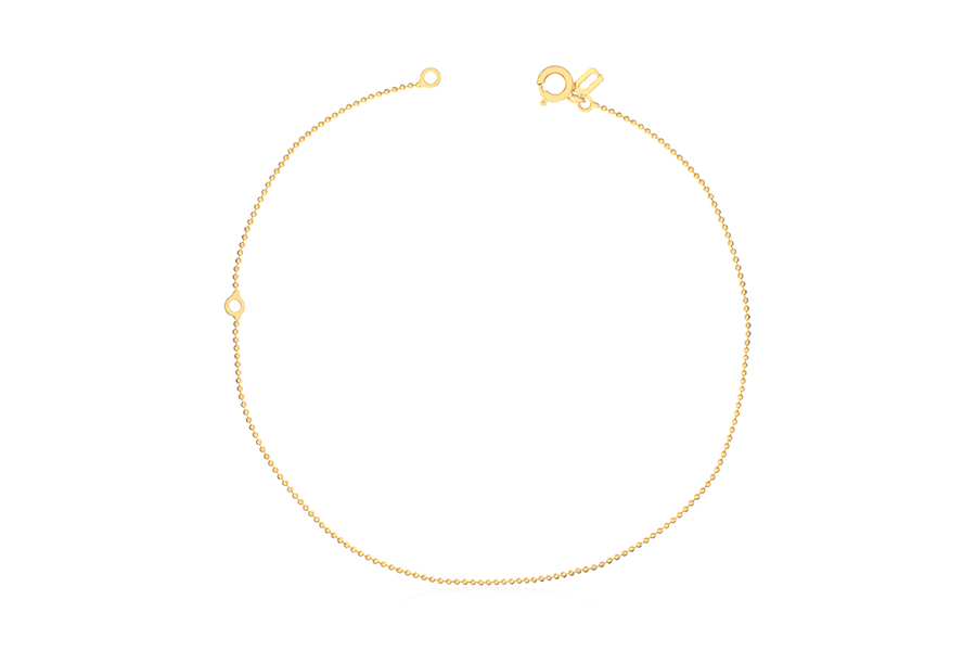TORNOZELEIRA BANHADA EM RÓDIO BRANCO, ELO PORTUGUÊS 2,50mm ESPESSURA, 22cm COMPRIMENTO, OLHO GREGO 5mm LARGURA E PONTO DE LUZ 3,50mm DIÂMETRO