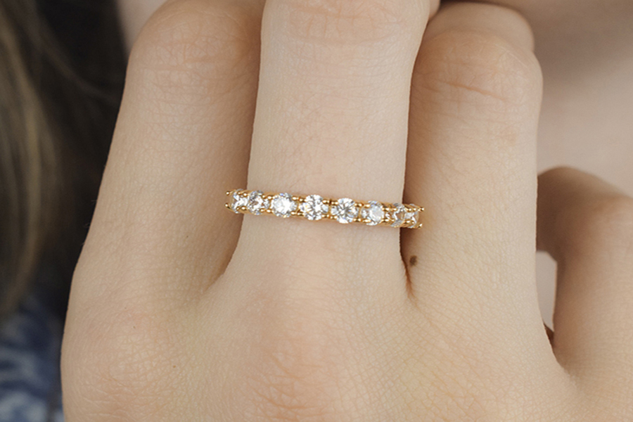 ANEL BANHADO EM RÓDIO BRANCO, ALIANÇA COM 8 ZIRCÔNIAS