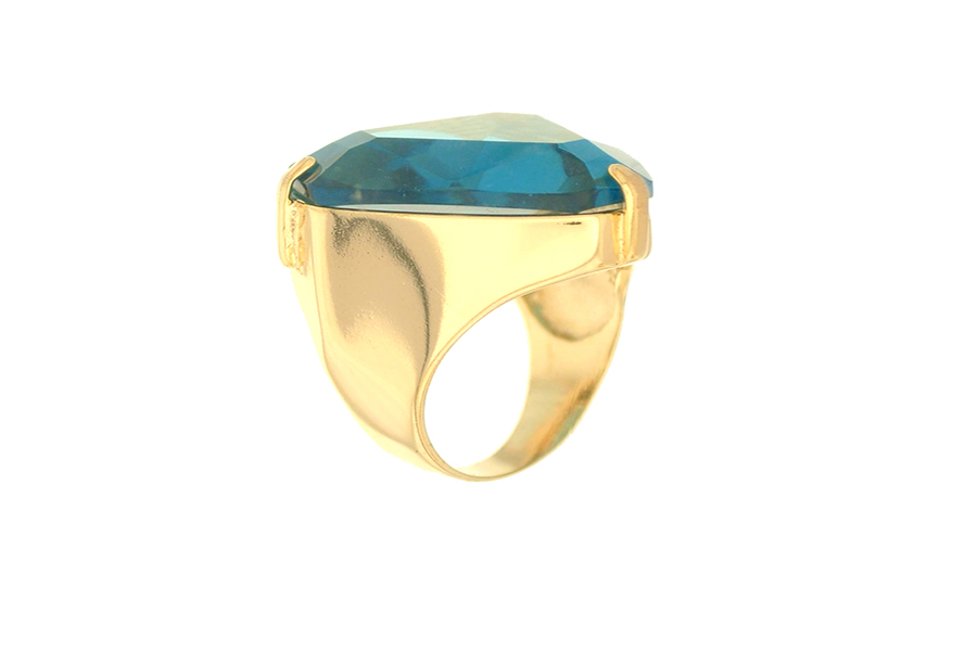 ANEL BANHADO EM OURO, CRISTAL RETANGULAR 21X12mm, PARA QUALQUER COR DE PEDRA