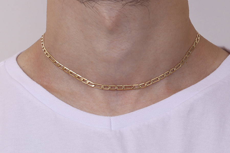 GARGANTILHA BANHADA EM OURO, CORRENTE LACRAIA LAMINADA 2mm DE LARGURA, 80cm DE COMPRIMENTO E PESO 7,20g