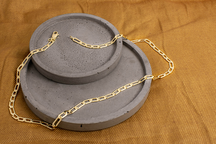 CORRENTE BANHADA EM OURO, ELO PORTUGUÊS 5mm, 40cm COMPRIMENTO, EXTENSOR 5cm COMPRIMENTO E PESO 11,3g