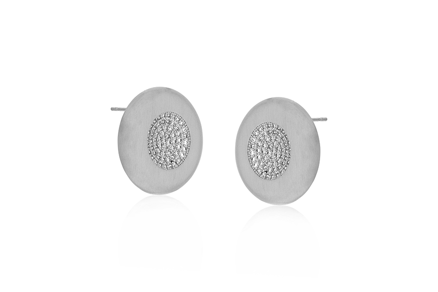 BRINCO BANHADO EM RÓDIO BRANCO, ARGOLINHA 16mm DIÂMETRO, 9mm LARGURA COM 59 ZIRCÔNIAS