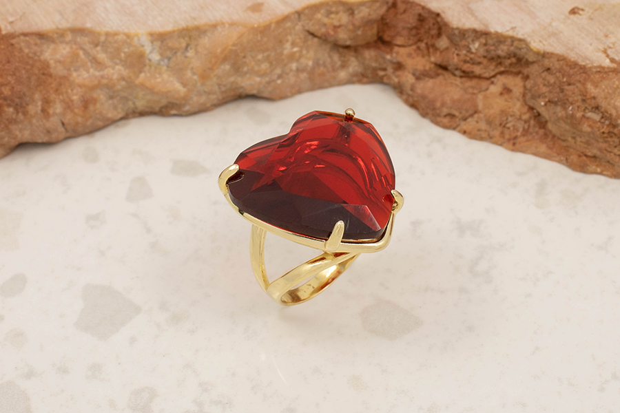 ANEL BANHADO EM PRATA LEVE, FORMATO DE CORAÇÃO
