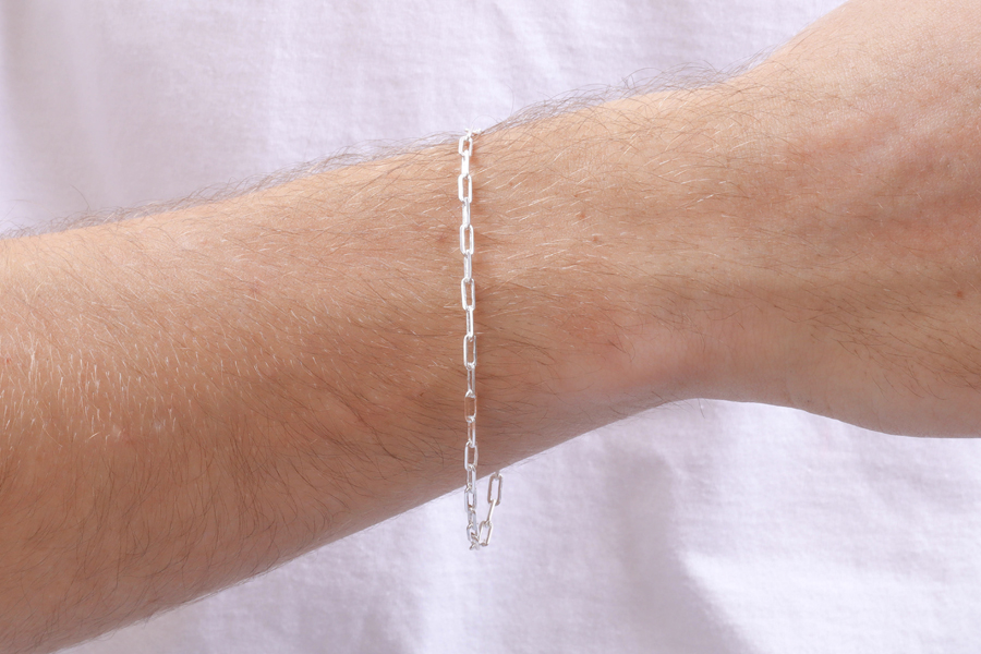 PULSEIRA BANHADA EM RÓDIO BRANCO, ELO 4mm LARGURA, 16cm COMPRIMENTO E CORAÇÃO GRATIDÃO 18mm LARGURA