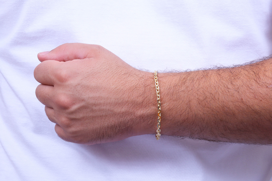 PULSEIRA BANHADA EM OURO, CORRENTE ELO CARTIER 8,50x3,30mm, 19 E 20cm COMPRIMENTO E PESO 3,30g